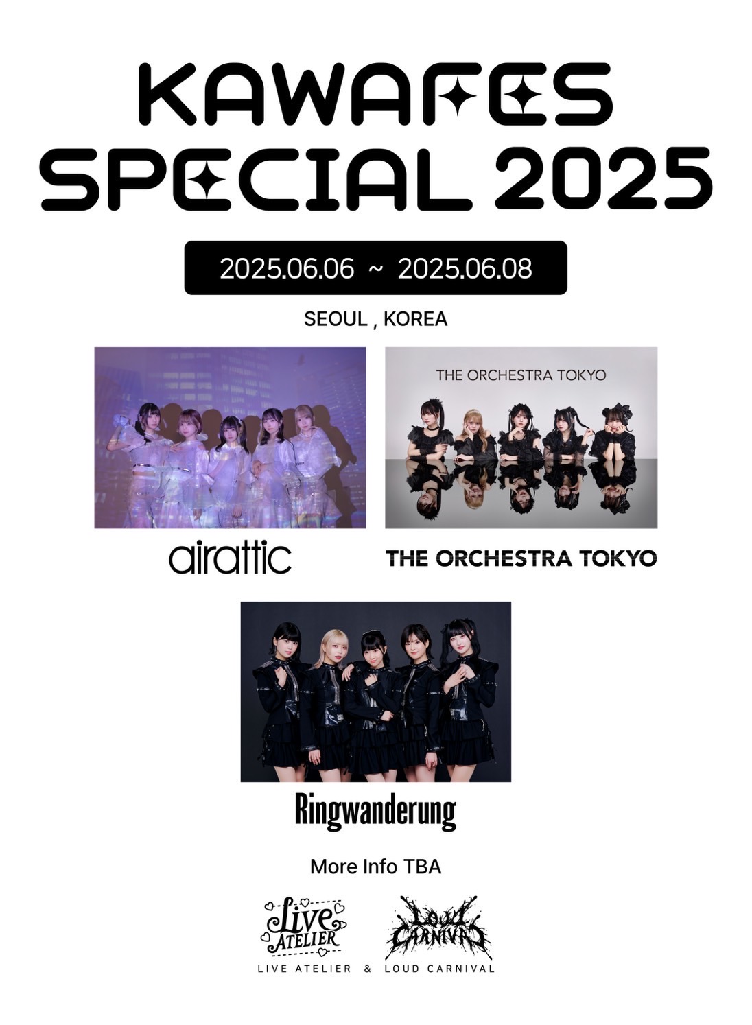 韓国遠征決定! 2025.03.02 NEWS ライブ ■日程 2025年6月6日〜8日 『KAWAFES SPECIAL 2025』 ■出演者 THE ORCHESTRA TOKYO Ringwanderung airattic URL Copied!